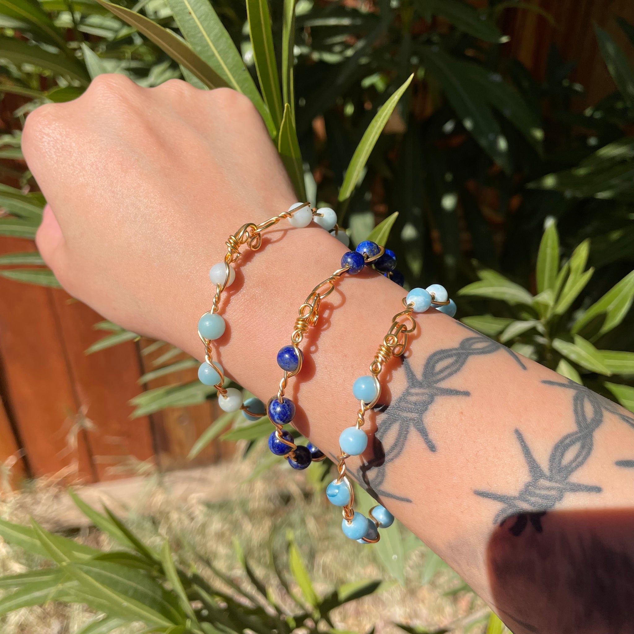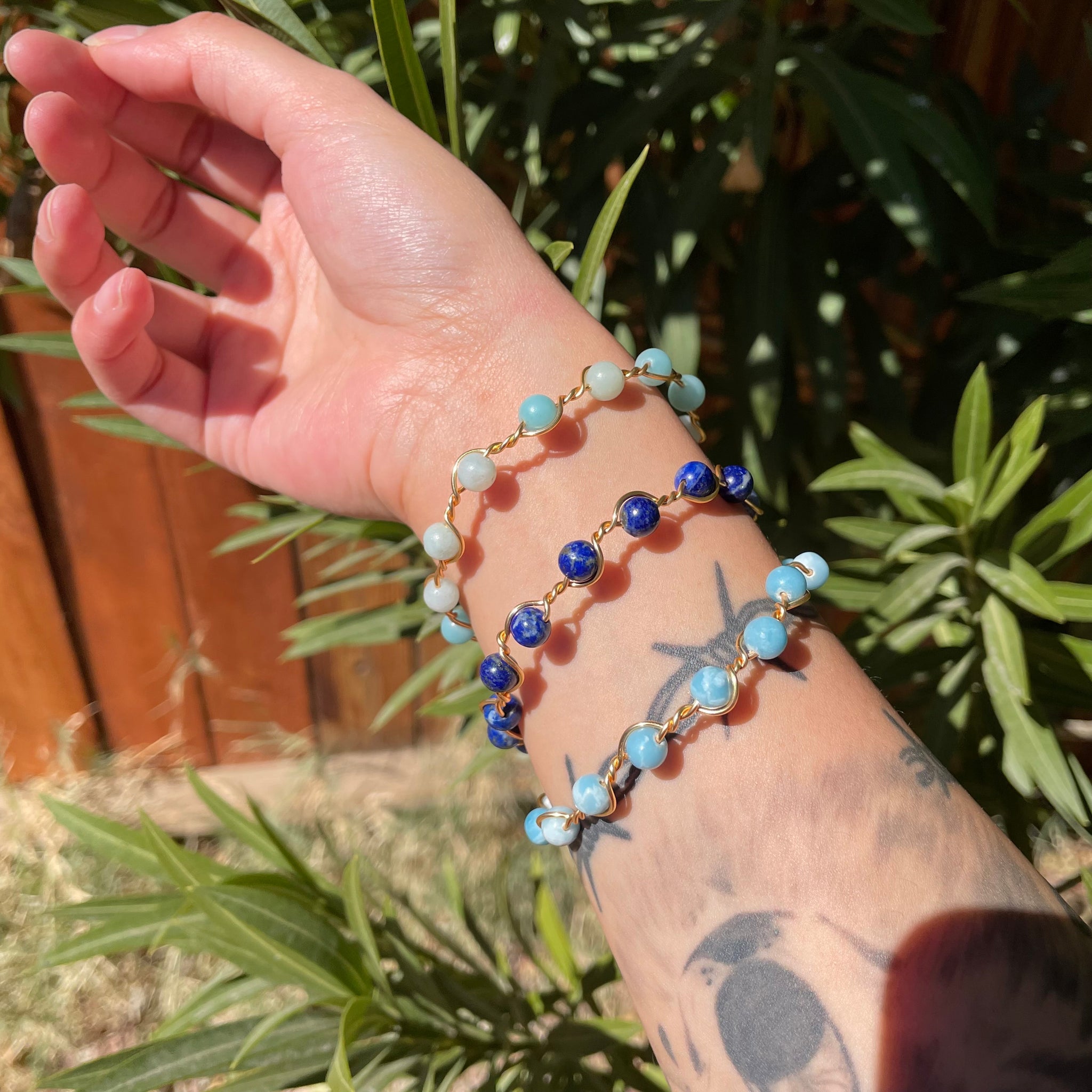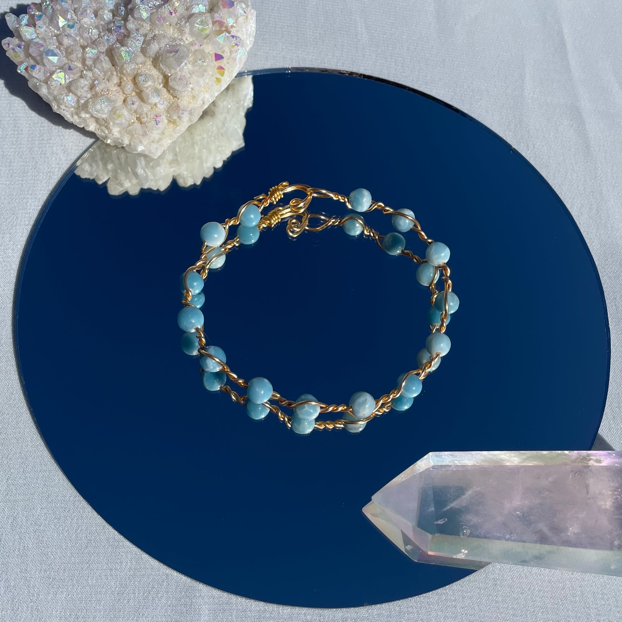 Features genuine and natural grade A Larimar stones handmade with tarnish resistant permanent gold enamel jewelry wire Larimar is a healing stone. It connects with nature and is very grounding to counteract imbalances. It heals the throat and...Read more