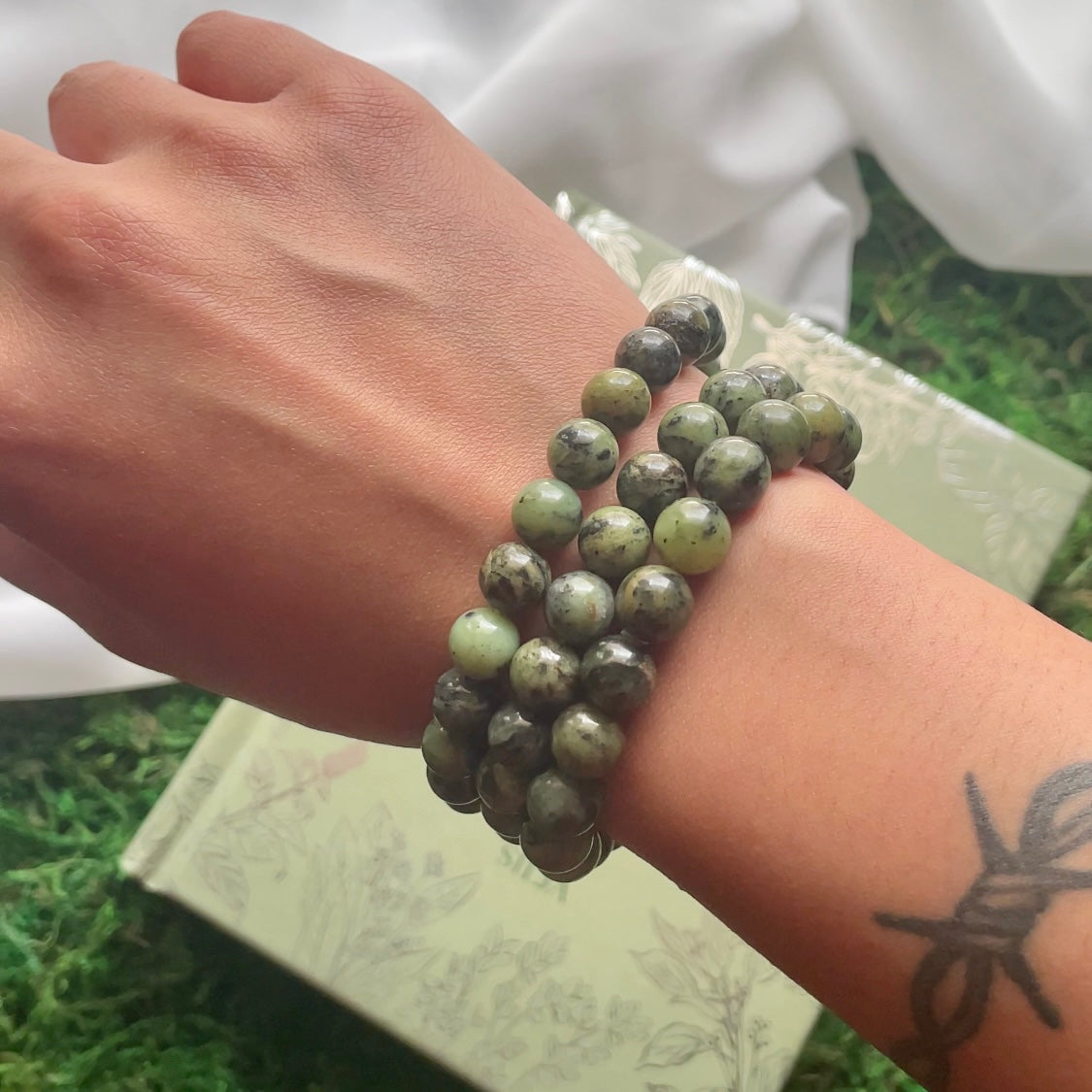 Hand made with genuine and natural Nephrite Green Jade stones and jewelry elastic