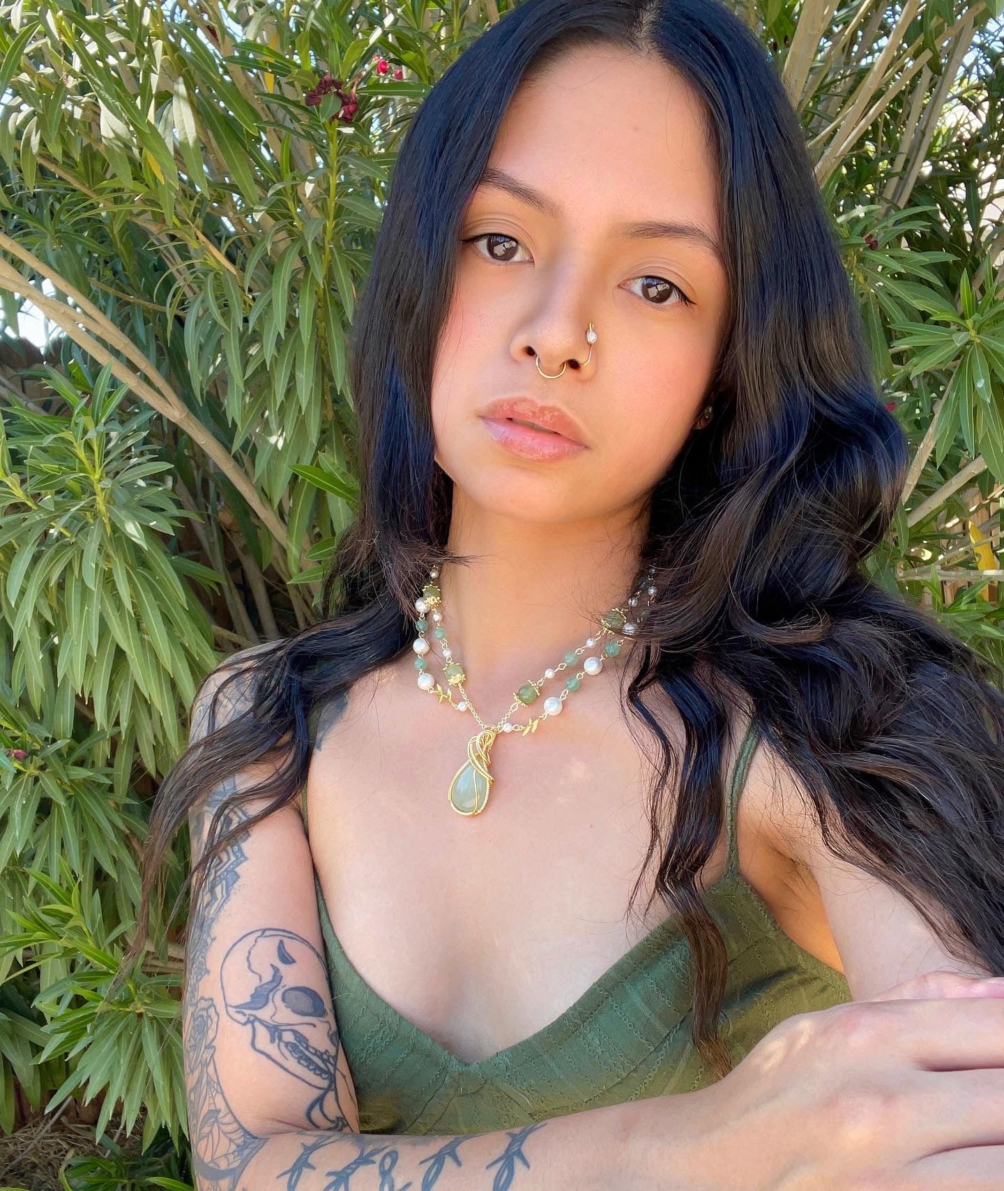 Features a Green AventurineĀ pendant wire wrappedĀ by meĀ