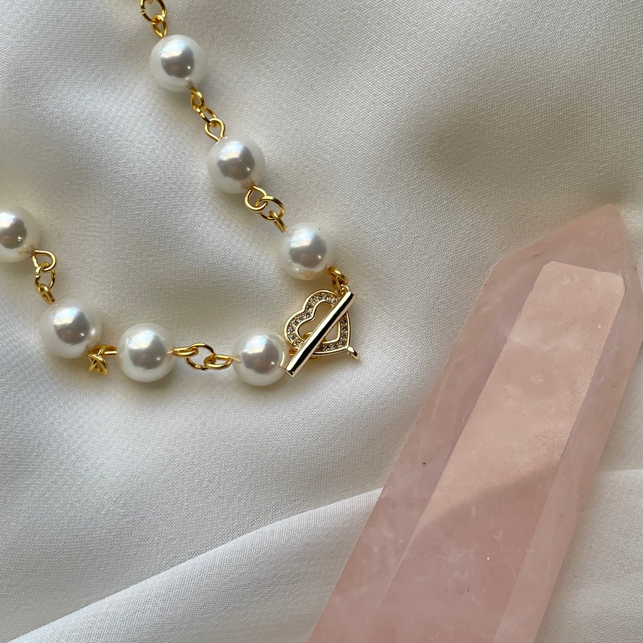 Handcrafted with tarnish resistant jewelry wire & 24k gold plated cubic zirconia heart clasp