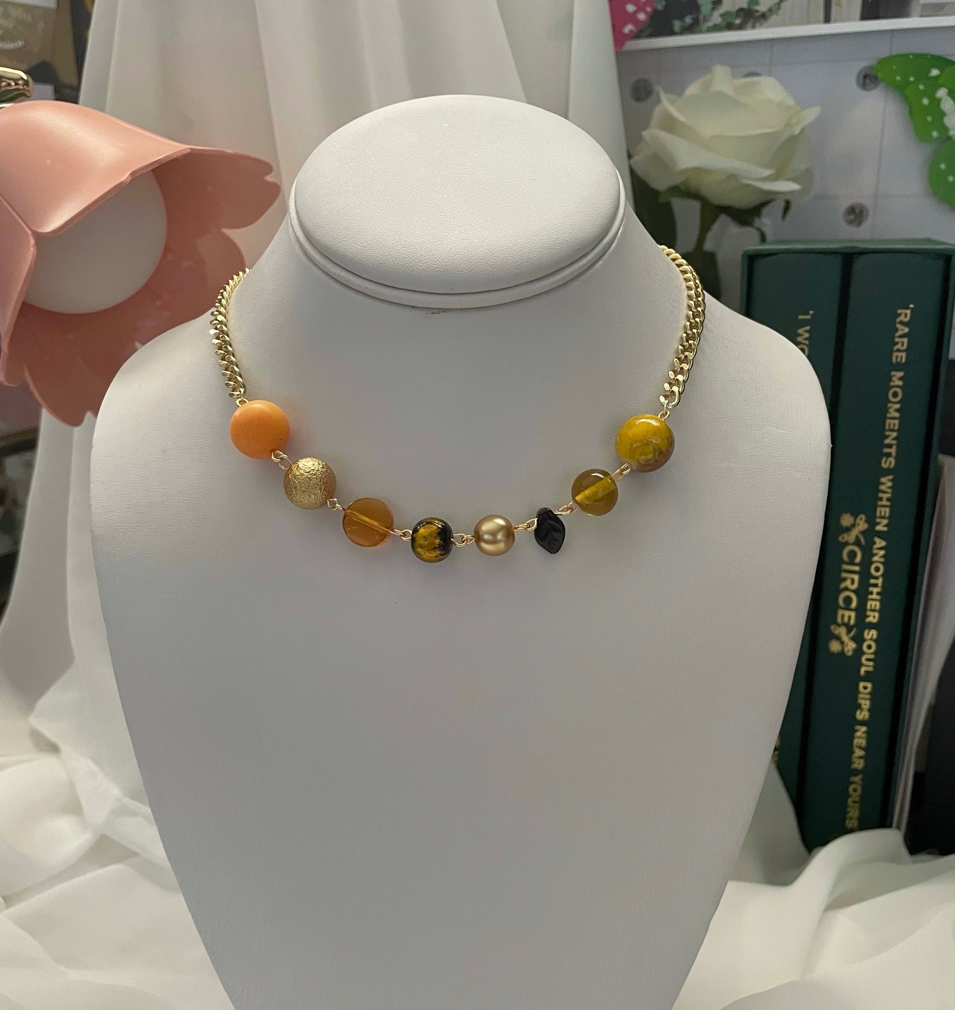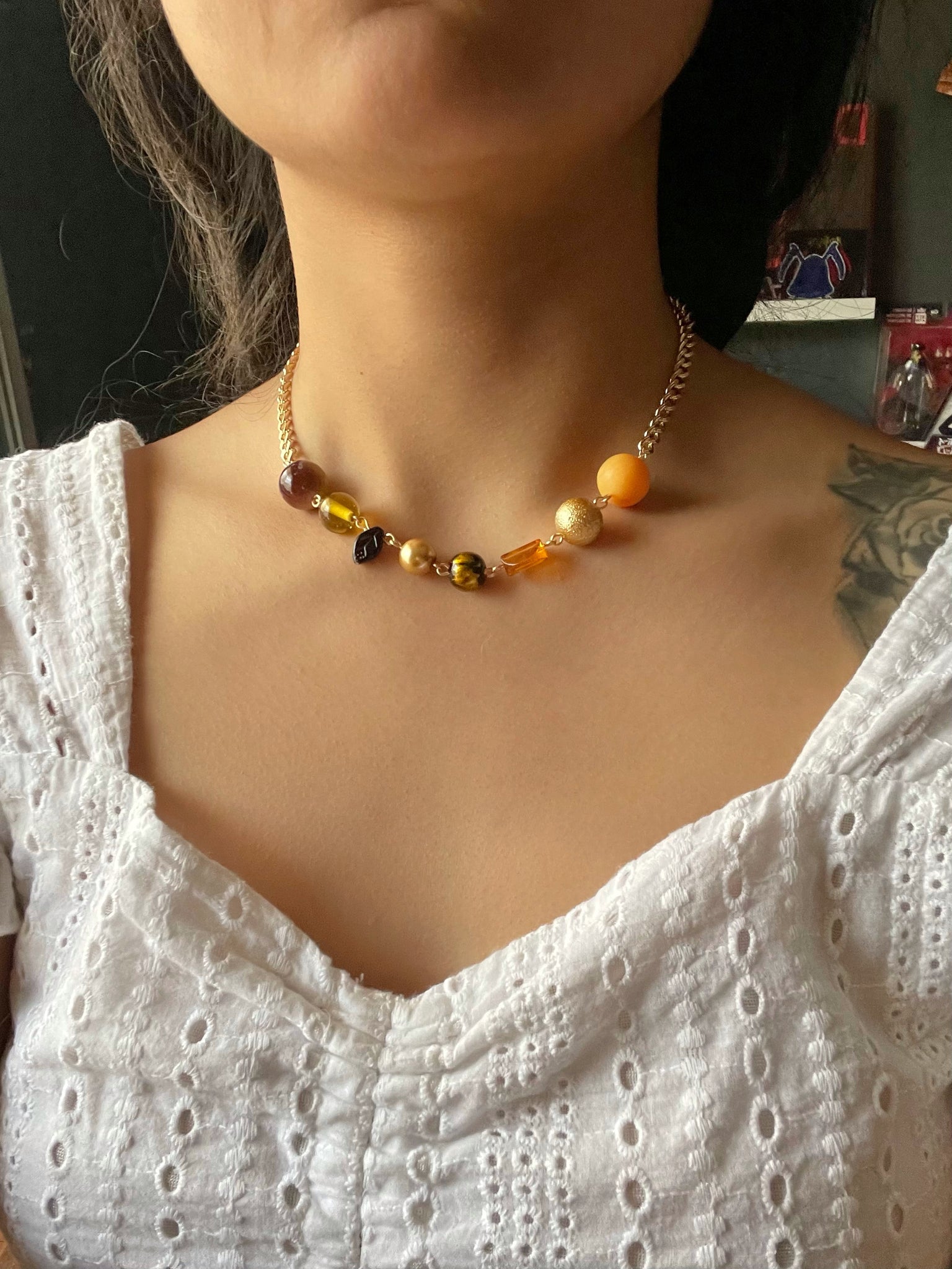 Hand beaded with vintage beads This is a one of a kind piece ♡ Gold stainless steel chain 15”-17” adjustable length Circe is the Greek Goddess of Sorcery and is also a witch. Daughter to Helios, the sun god and...Read more
