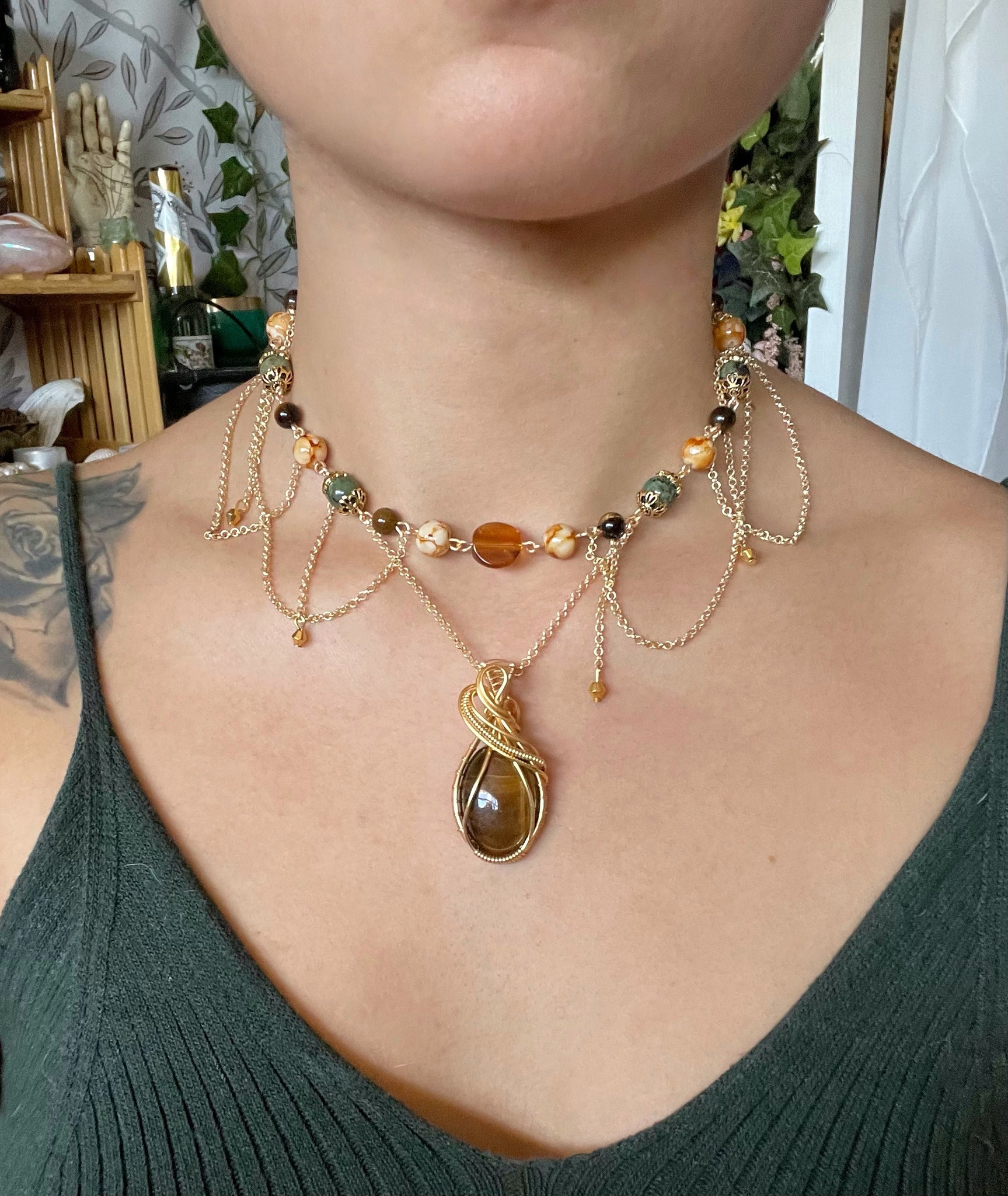 Features a genuine Tigers Eye pendant wire wrapped by me