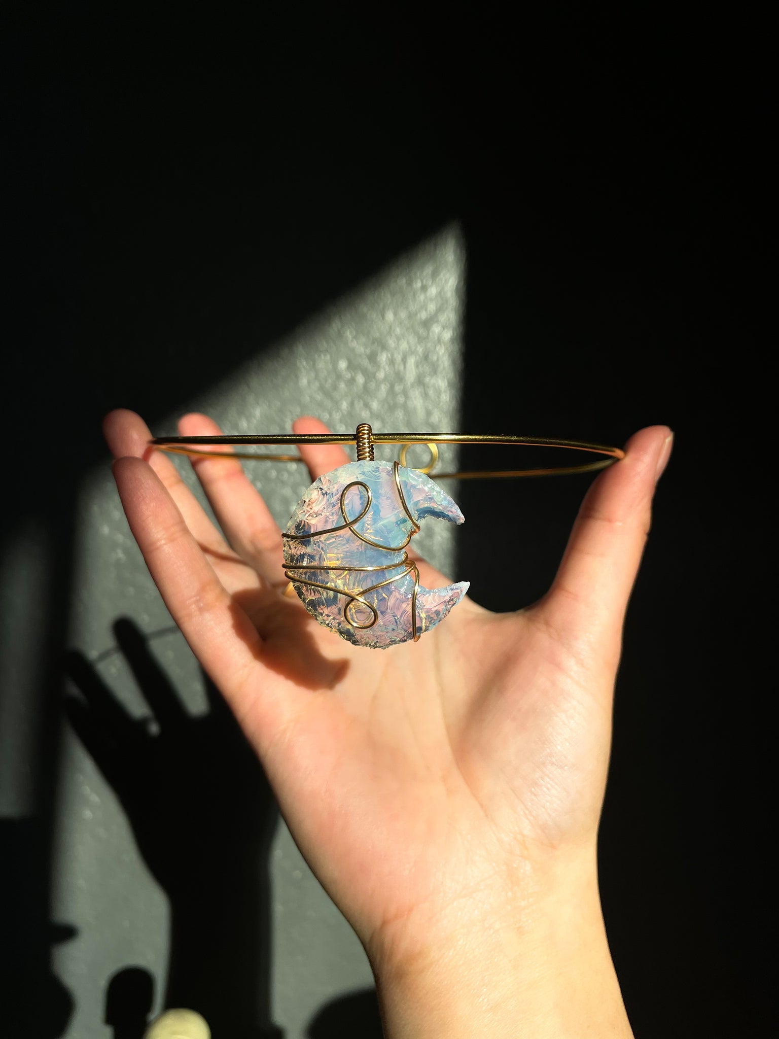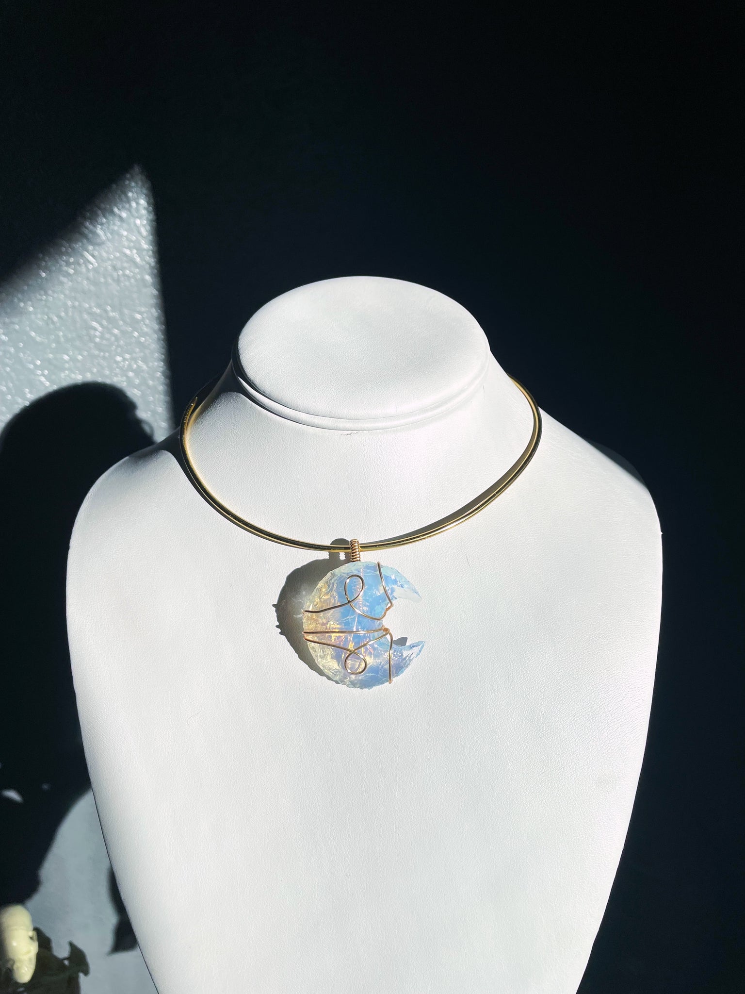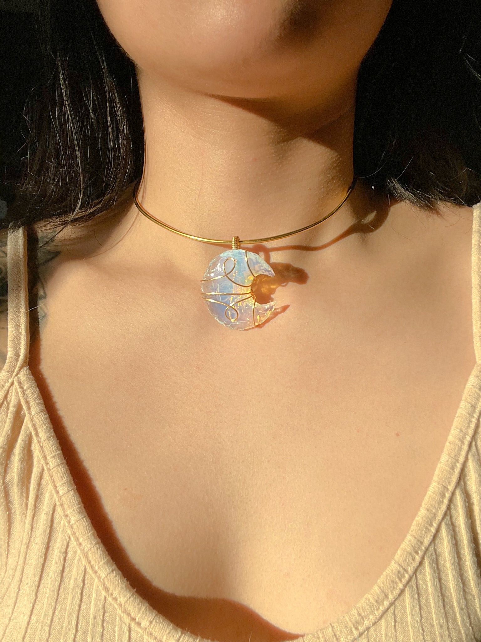 handmade adjustable choker and hand wire wrapped opalite moonĀ pendantĀ