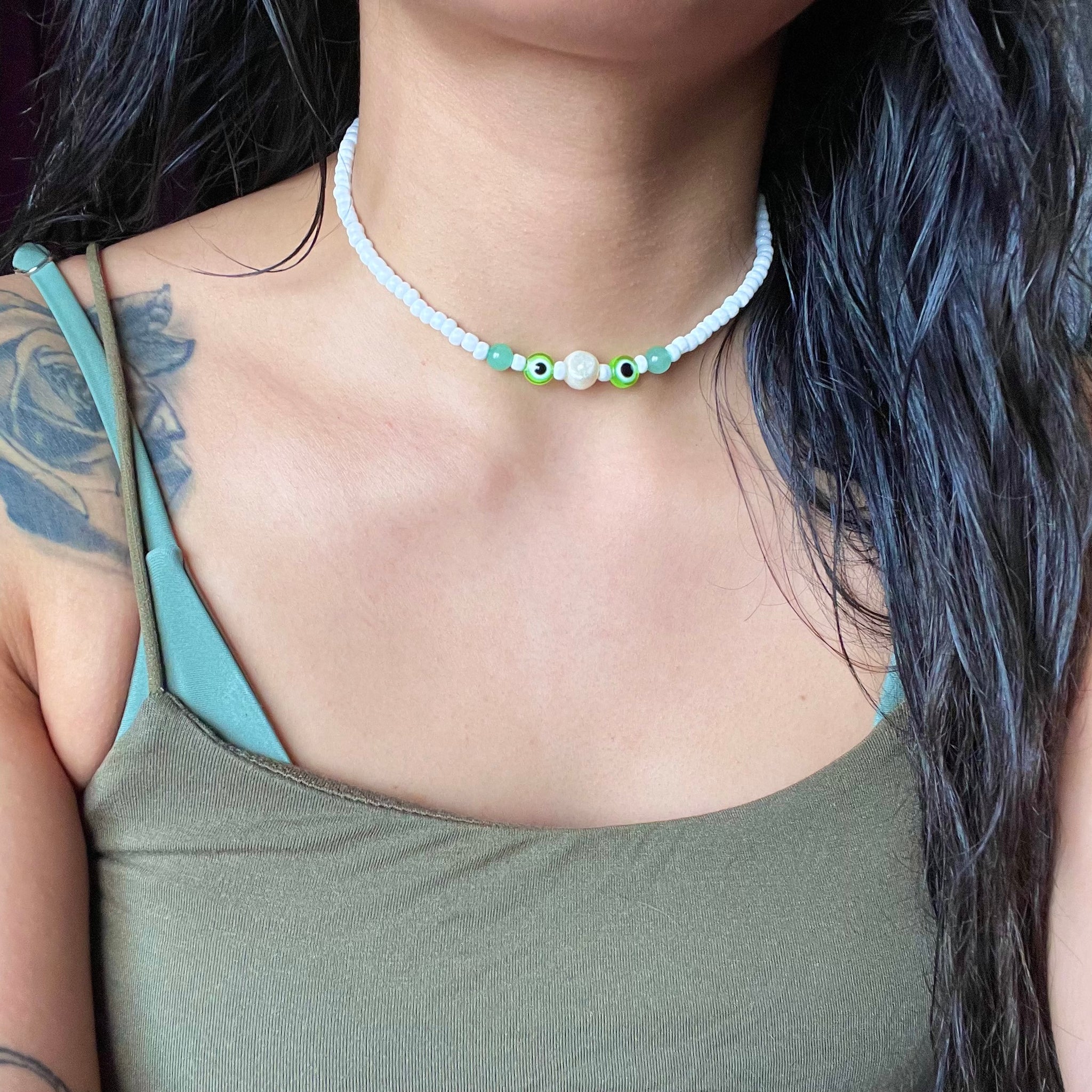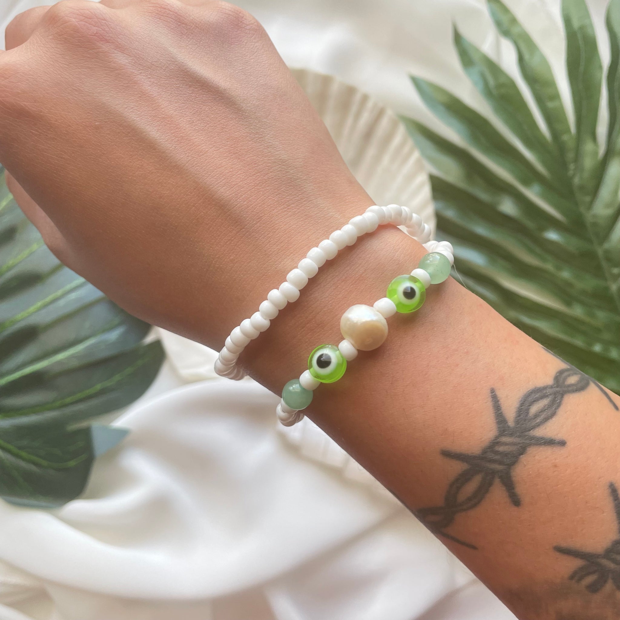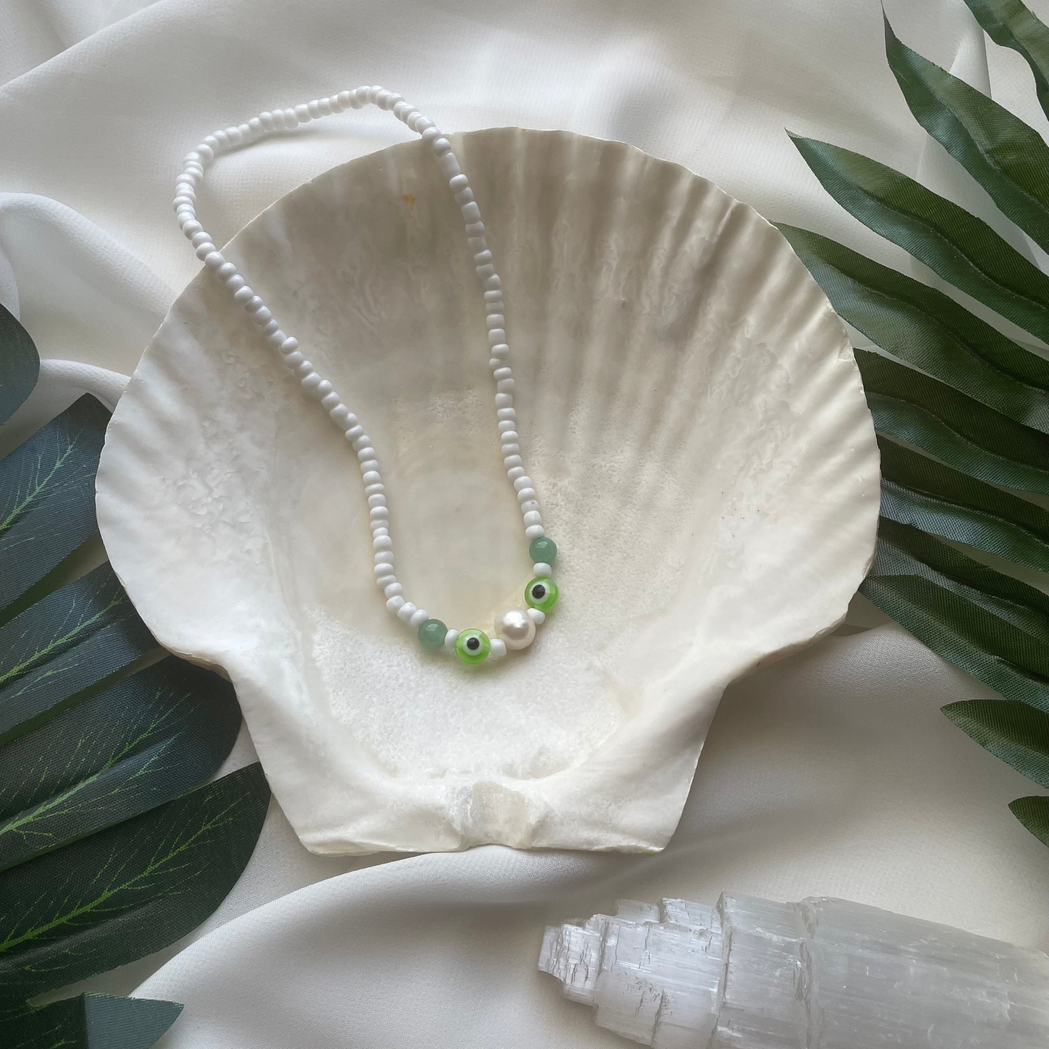 Features genuine and natural green aventurine crystals and a grade AAA fresh water pearl