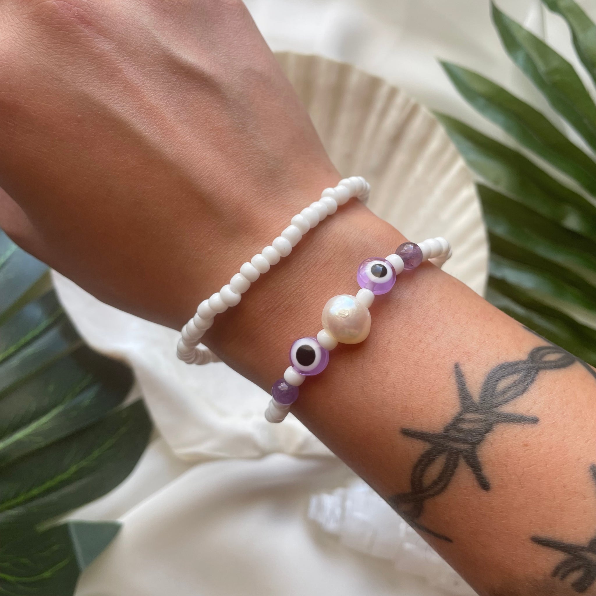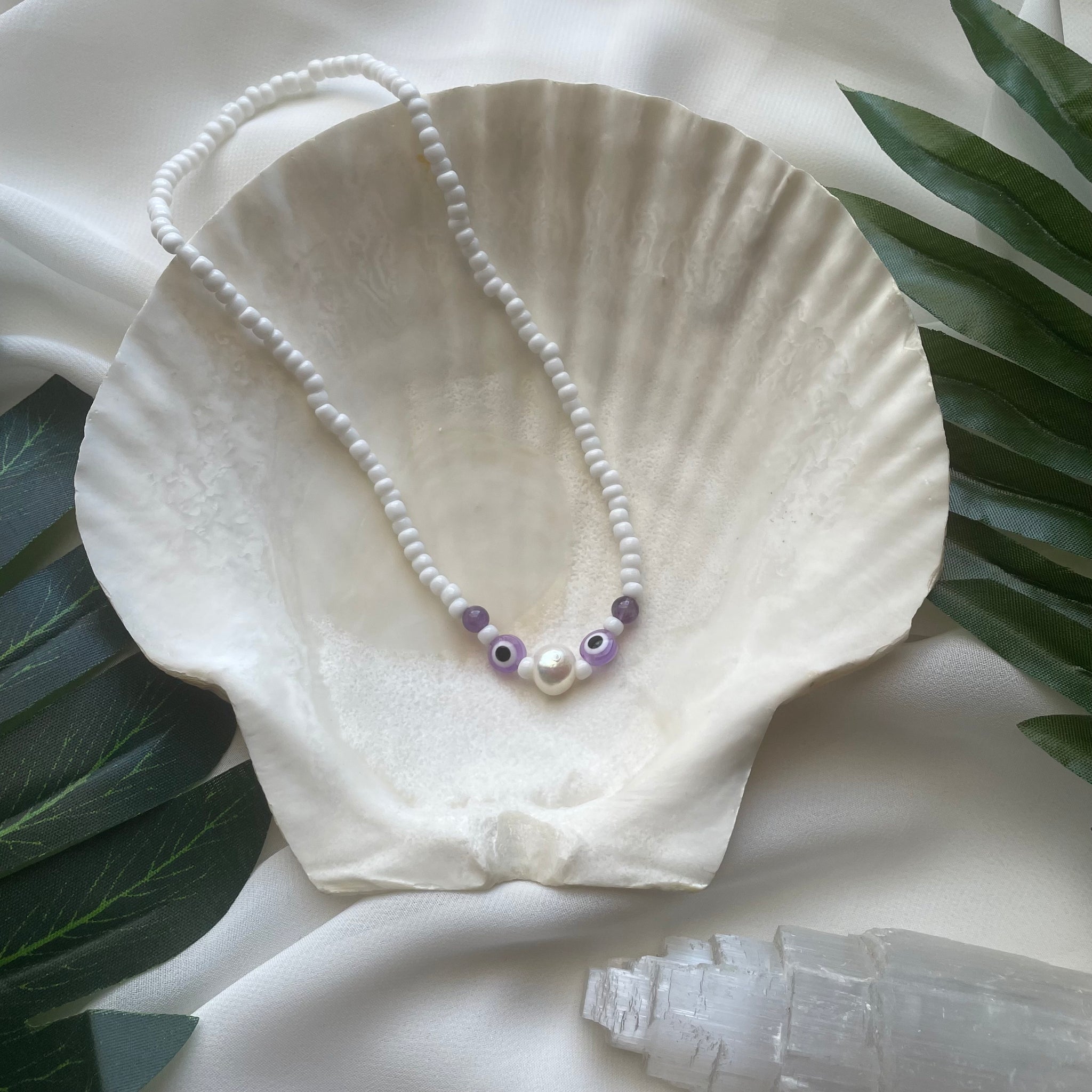Features genuine and natural amethyst crystals and a grade AAA fresh water pearl