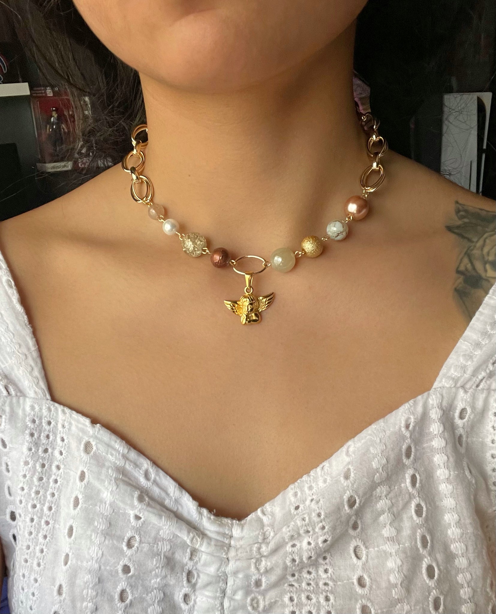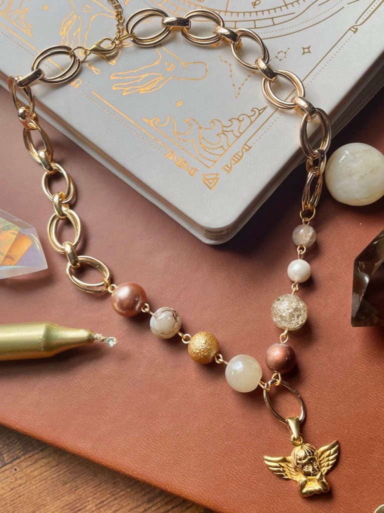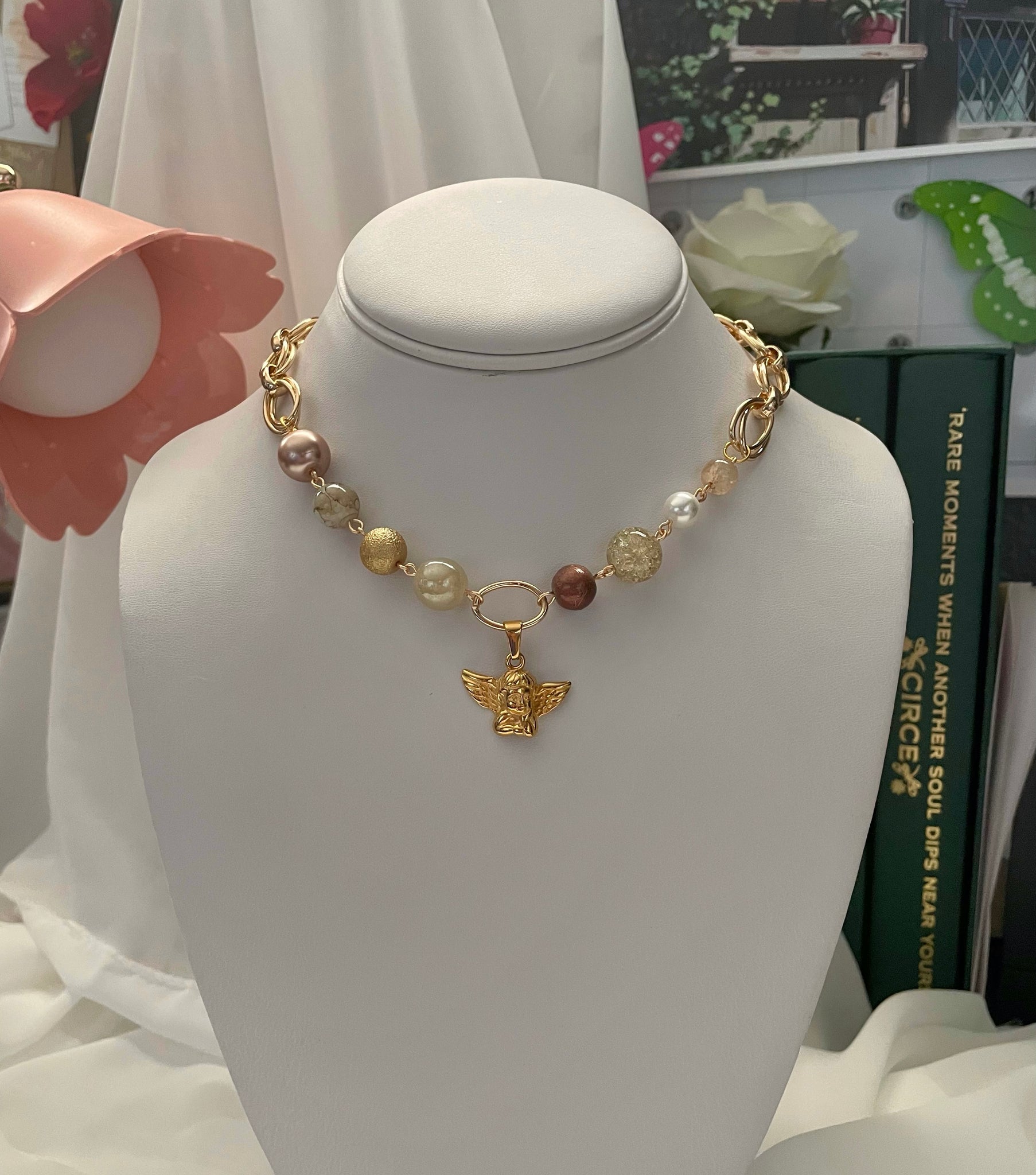 Hand beaded with vintage beads and a genuine mother of Pearl
