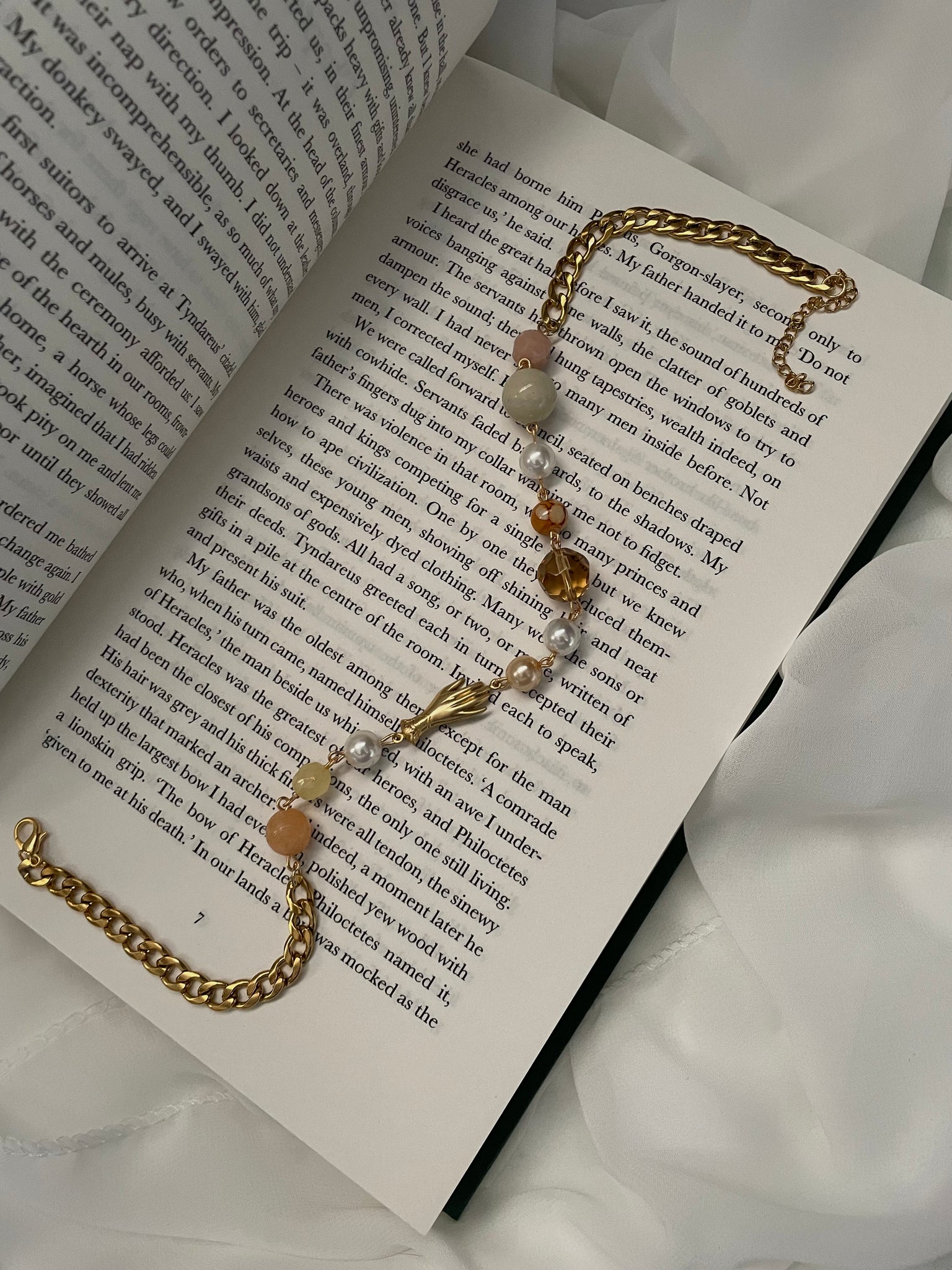 Hand beaded with genuine mother of pearls, peach jade, and vintage beads