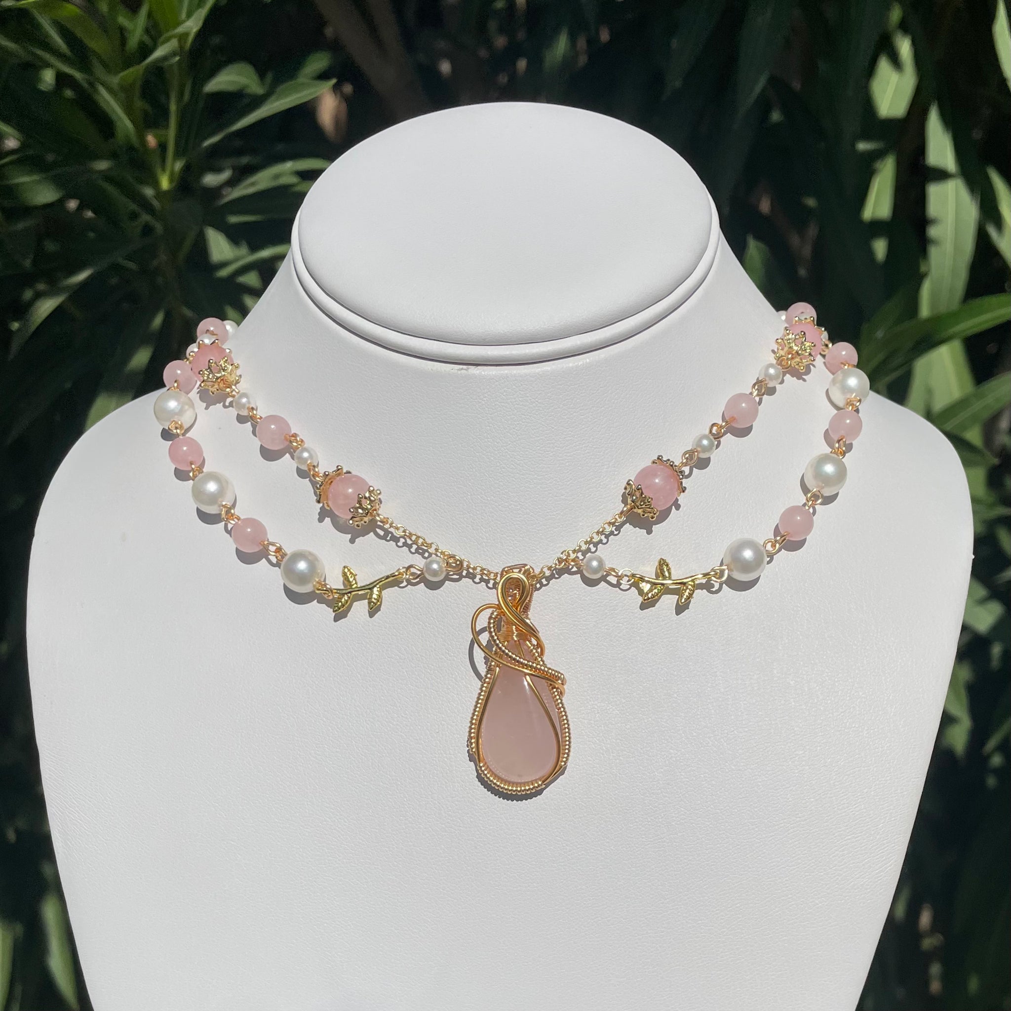 Features a Rose QuartzĀ pendant wire wrappedĀ by meĀ