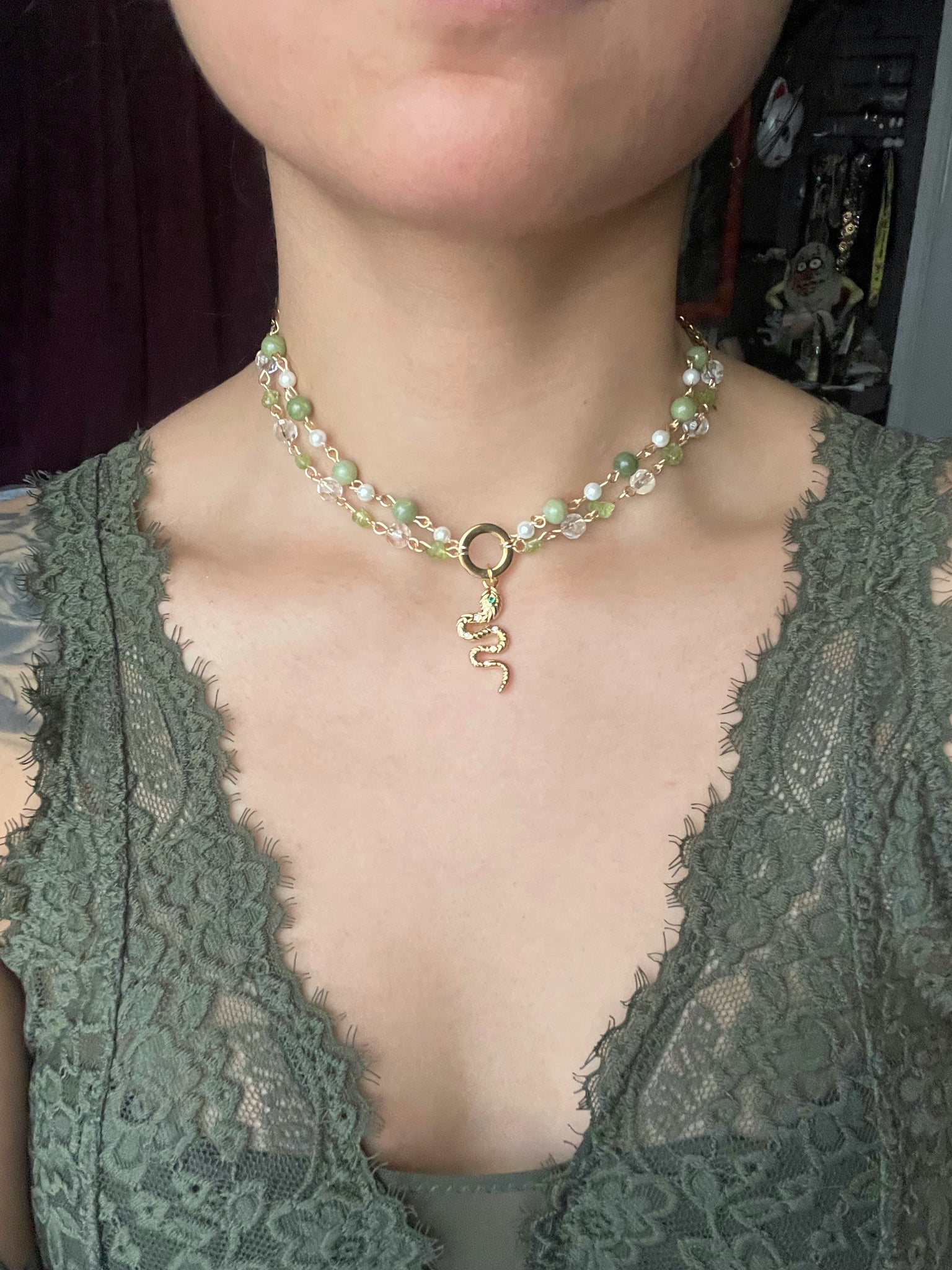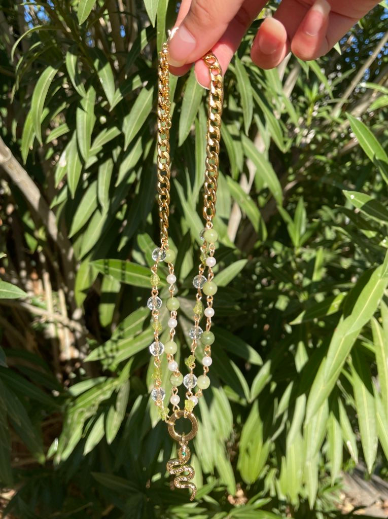 Handmade with genuineĀ peridot, green jade, and mother of pearlsĀ