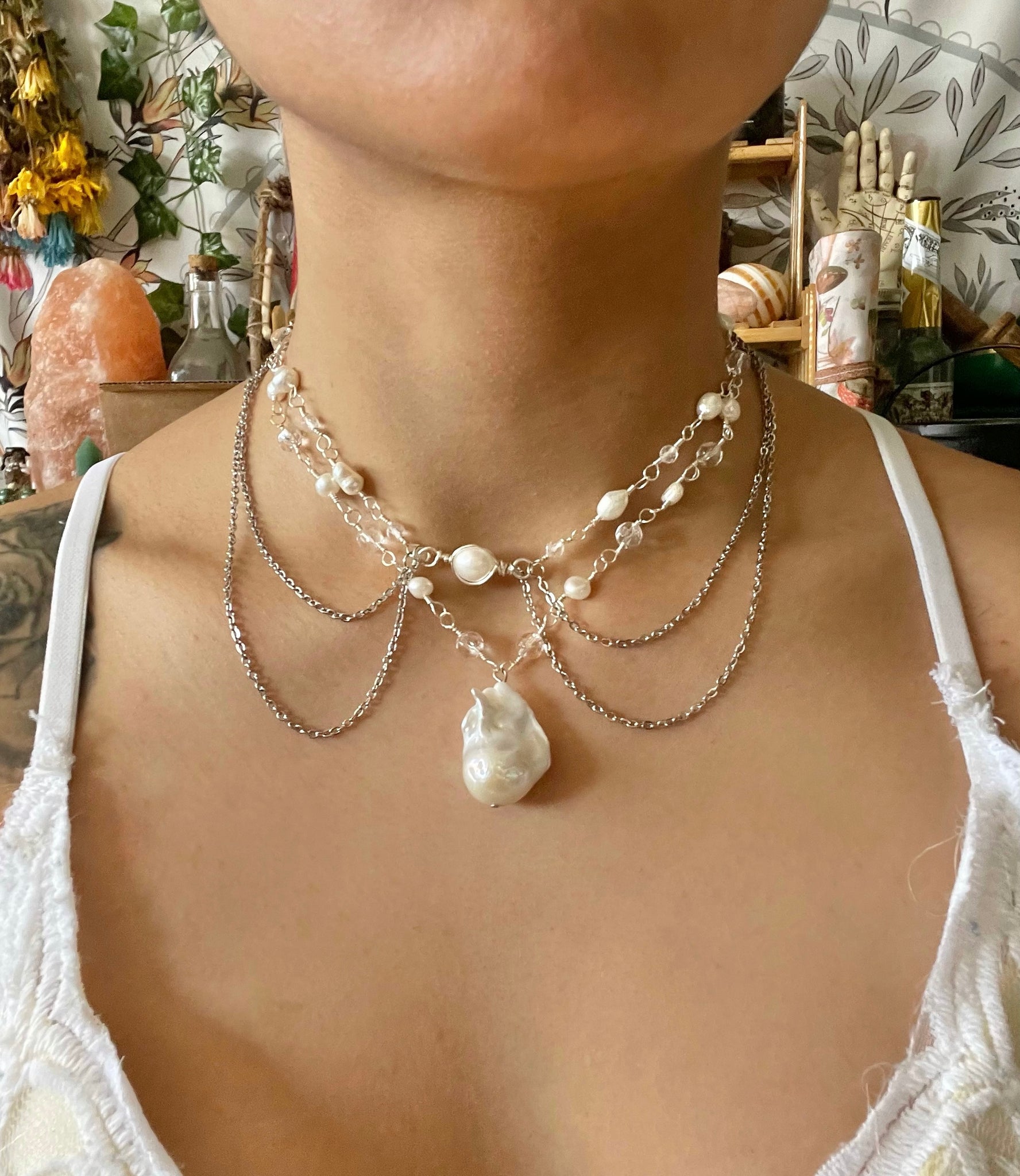 Handmade with genuine baroque pearl, fresh water pearls, and clear quartz