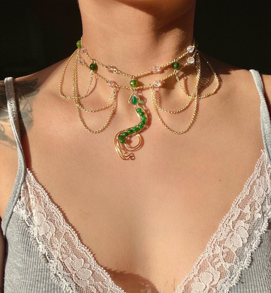 Handmade and hand beaded with tarnish resistant jewelry wire & tarnish resistant gold plated chain