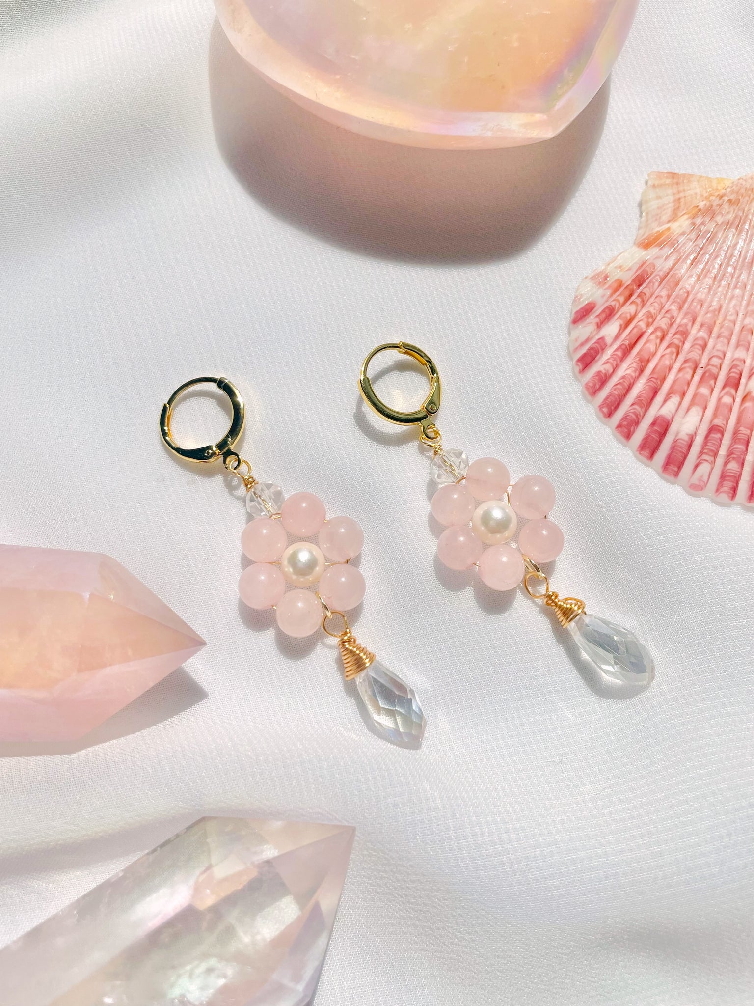 Bloom into Spring Earrings 🌷 Rose Quartz & Mother of Pearl