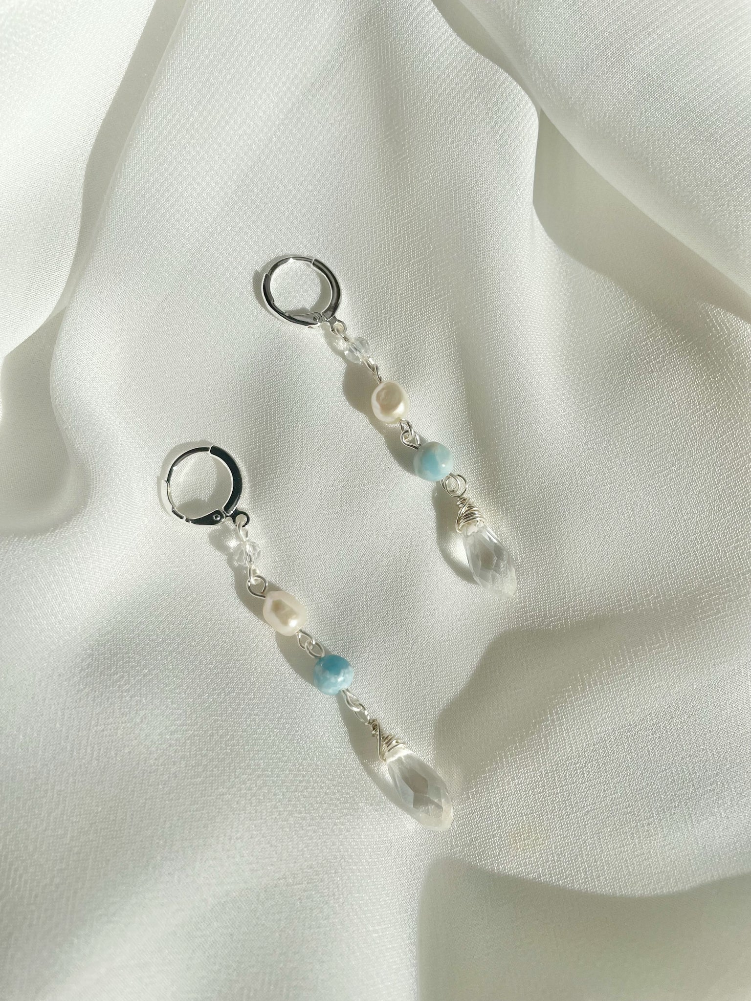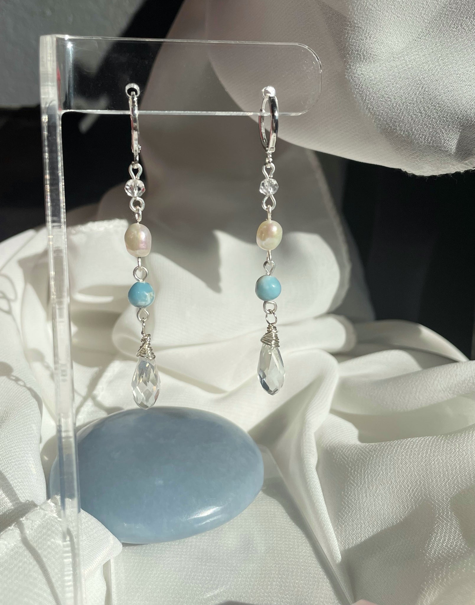 Larimar & Fresh Water Pearl Swarovski Earrings ☁️