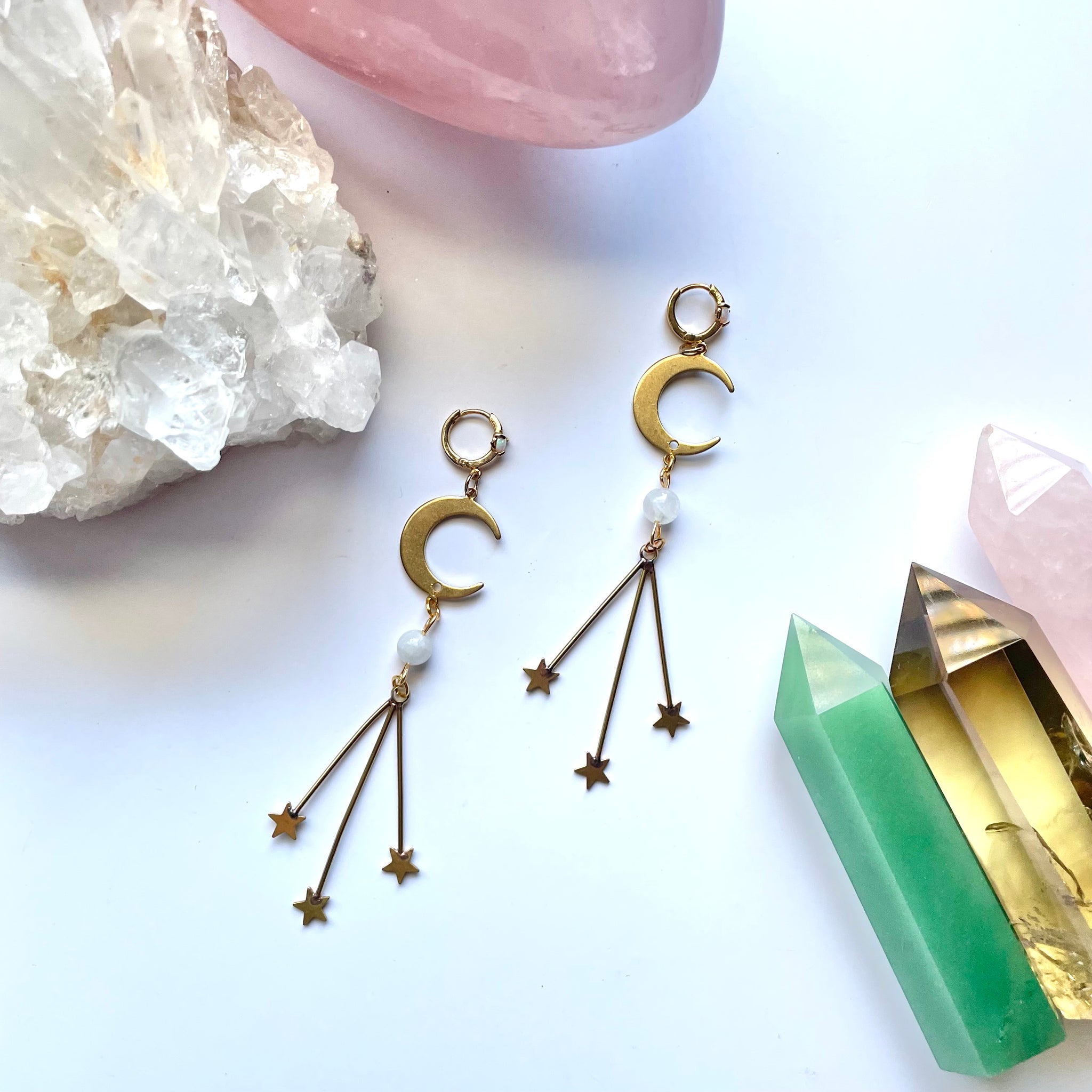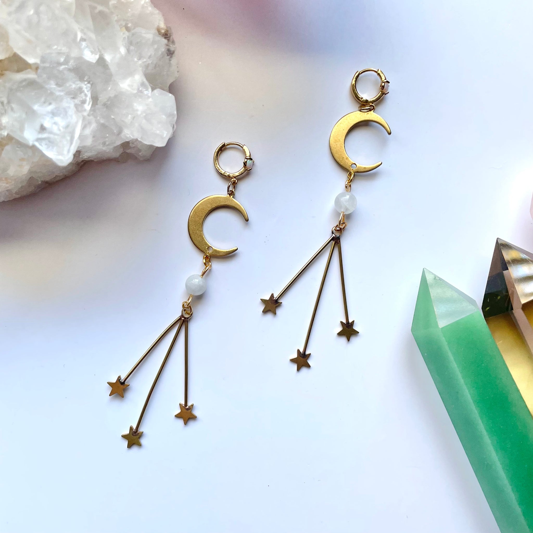 Rainbow Moonstone Moonlight Earrings feature natural and genuine Rainbow Moonstone stones