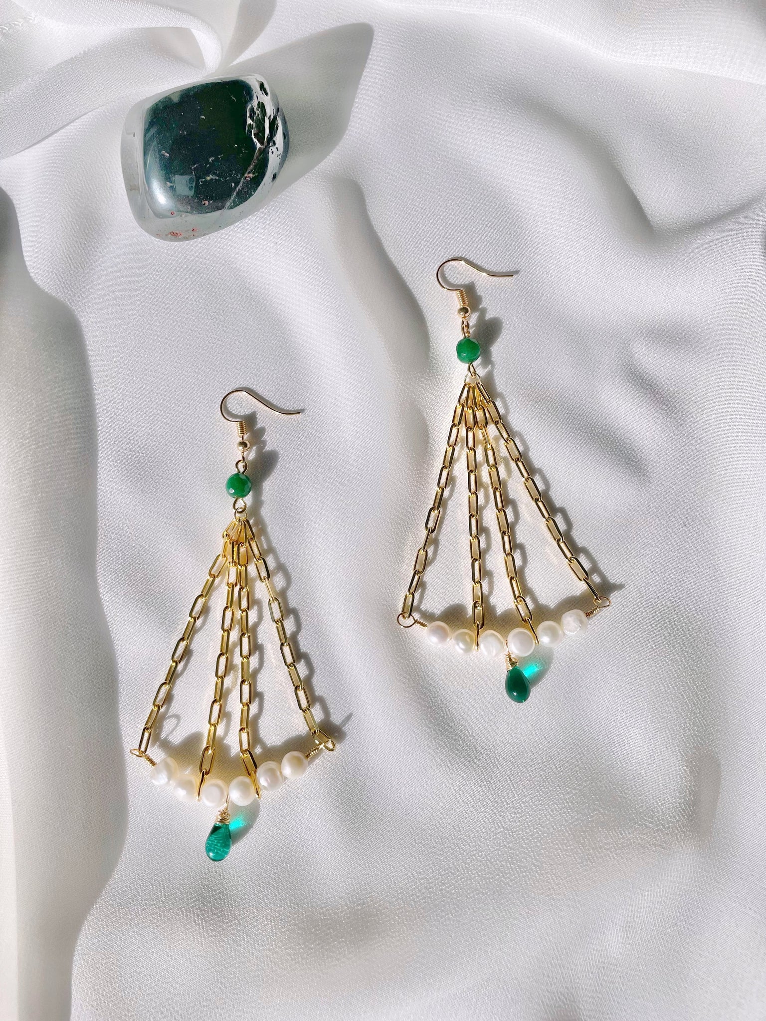 handmade with tarnish resistant jewelry wire, 22k lightweight gold plated chains, and hypoallergenic earring hooks