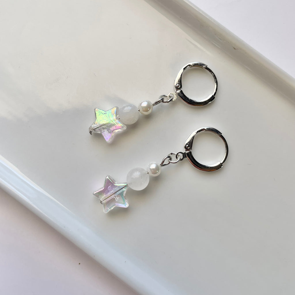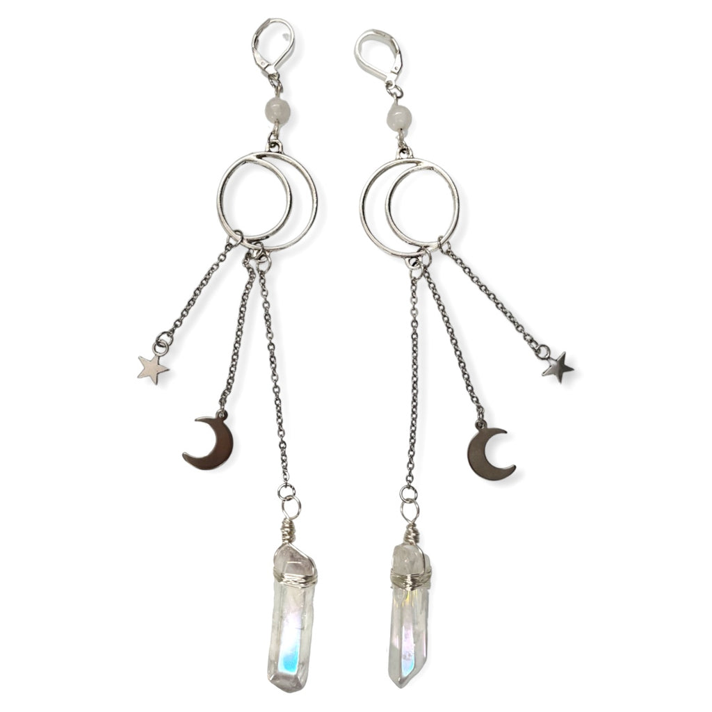Starlight Aura Quartz & Rainbow Moonstone Earrings