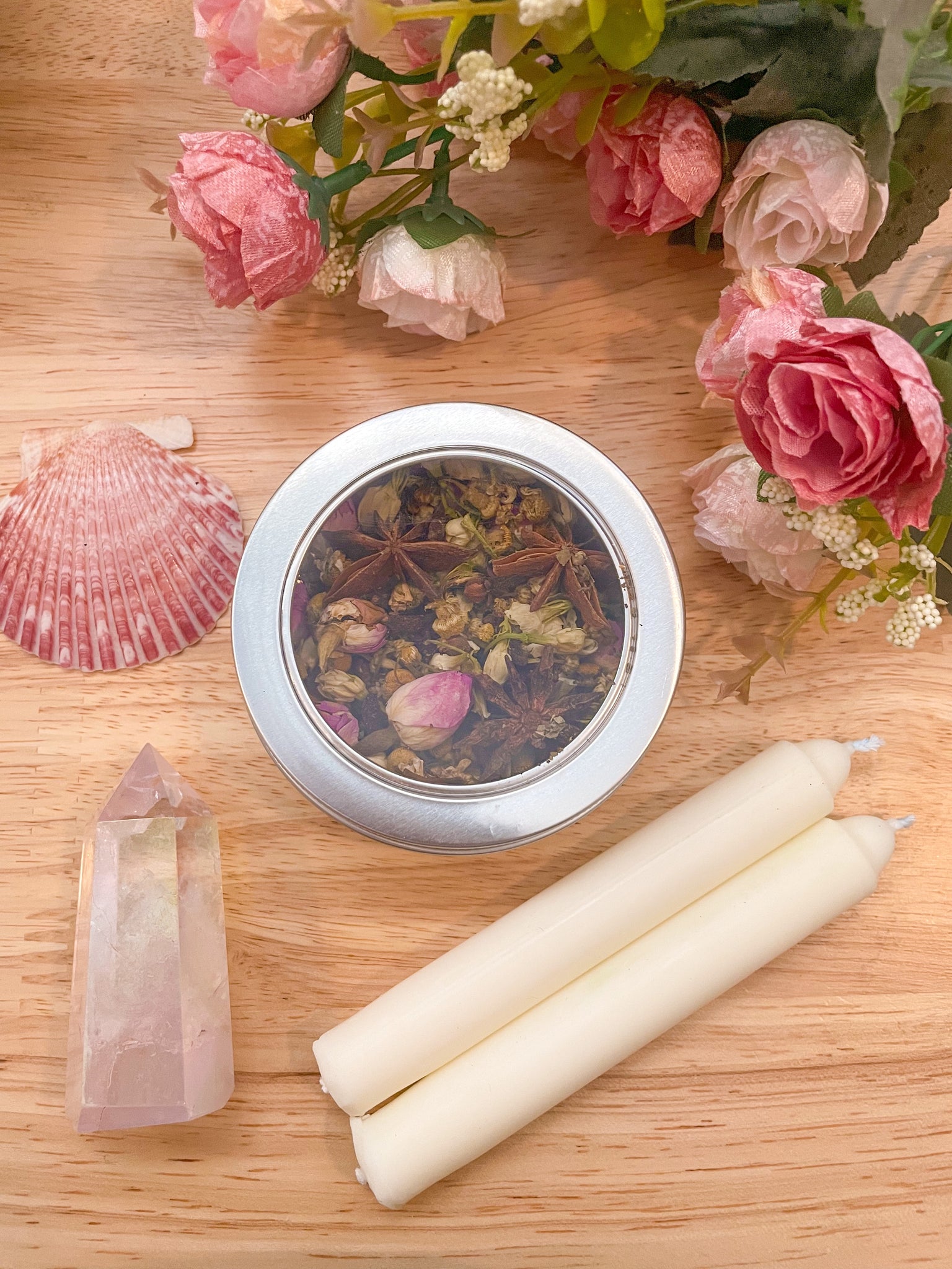 herbal mix can be used as loose incense, to dress candles with to enhance spells, & simmer pots
