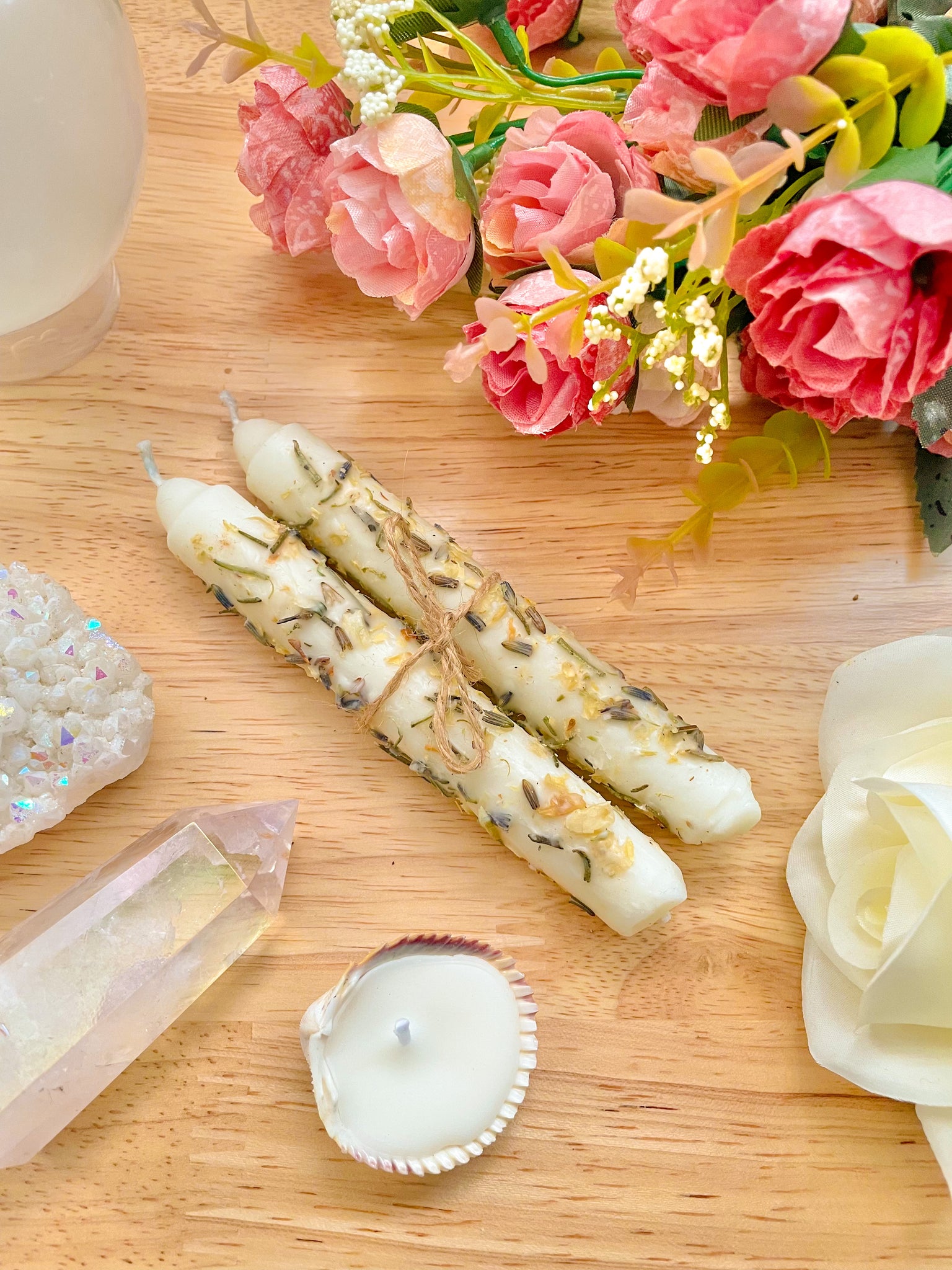 Handmade with all natural beeswax and soy wax blend I created, hand dressed with lots of intention and my witchy energy with quality dried herbs focusing on purification for an energetic and emotional cleanse and clarity for inner peace and a clear mind. hand sealed with beeswax on top to seal the herbs and it’s energy