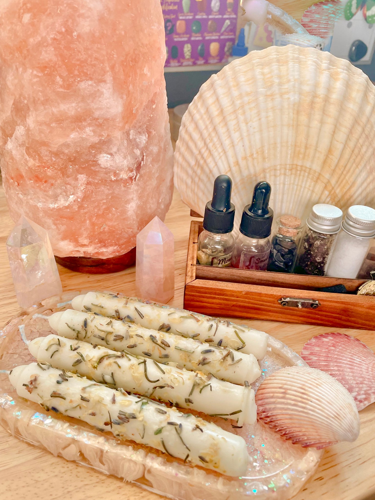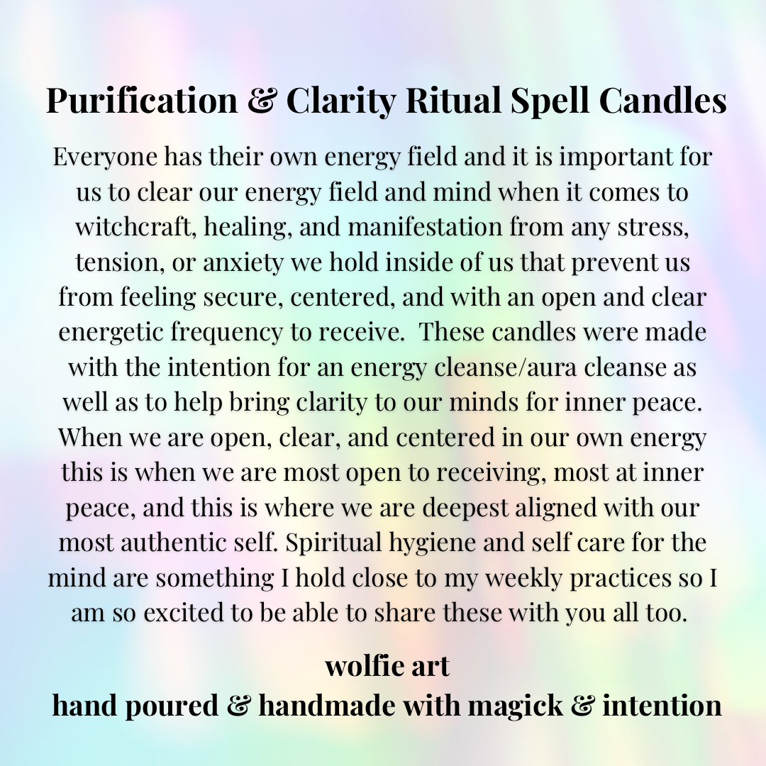 Everyone has their own energy field and it is important for us to clear our energy field and mind when it comes to witchcraft, healing, and manifestation from any stress, tension, or anxiety we hold inside of us that prevent us from feeling secure, centered, and with an open and clear energetic frequency to receive. These candles were made with the intention for an energy cleanse/aura cleanse as well as to help bring clarity to our minds for inner peace. When we are open, clear, and centered in our own energy this is when we are most open to receiving, most at inner peace, and this is where we are deepest aligned with our most authentic self. Spiritual hygiene and self care for the mind are something I hold close to my weekly practices so I am so excited to be able to share these with you all too.