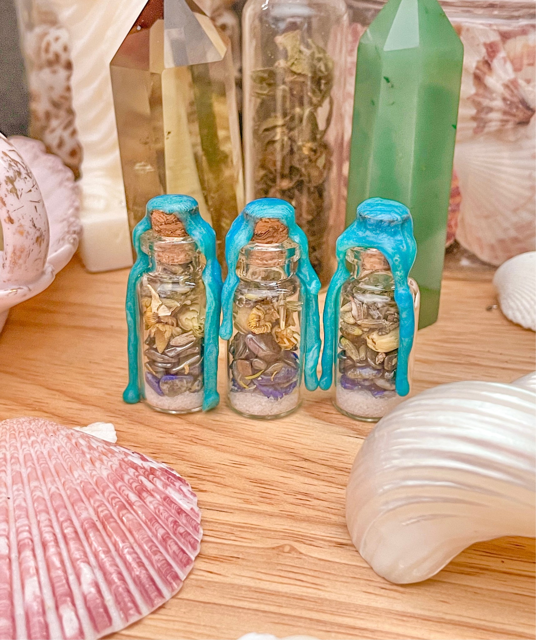 Made with my witchy energy, pure love, and intention and harnessing energy with different crystals and herbs to help you harness clarity, inner peace, grounding, and protection